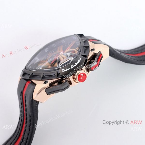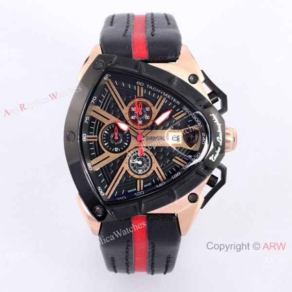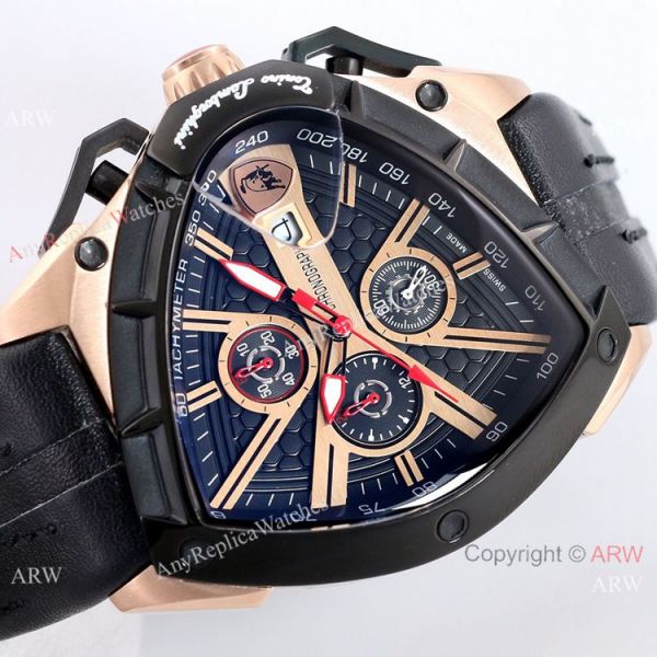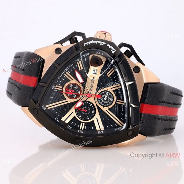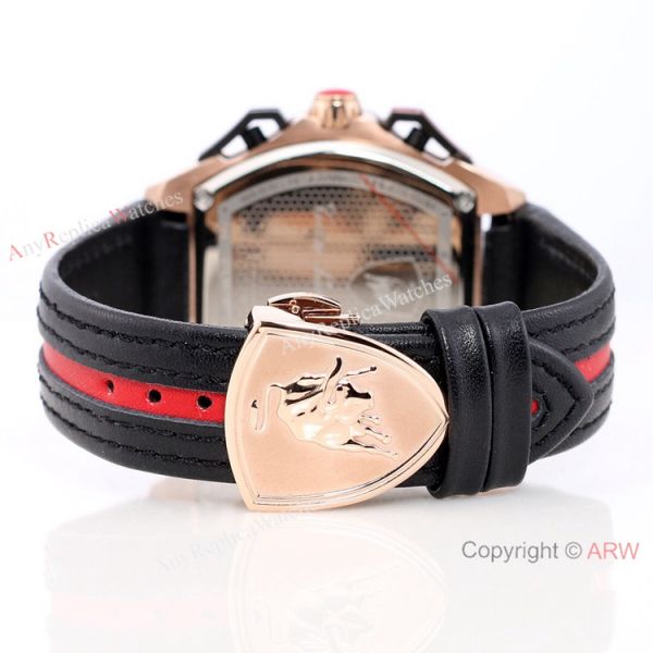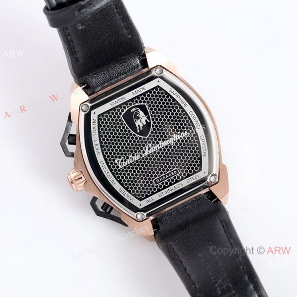 316l Rose Gold Watch Case - Lamborghini Black Face - Lamborghini Black Leather Strap Tonino Lamborghini Watch Replica