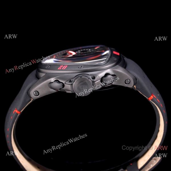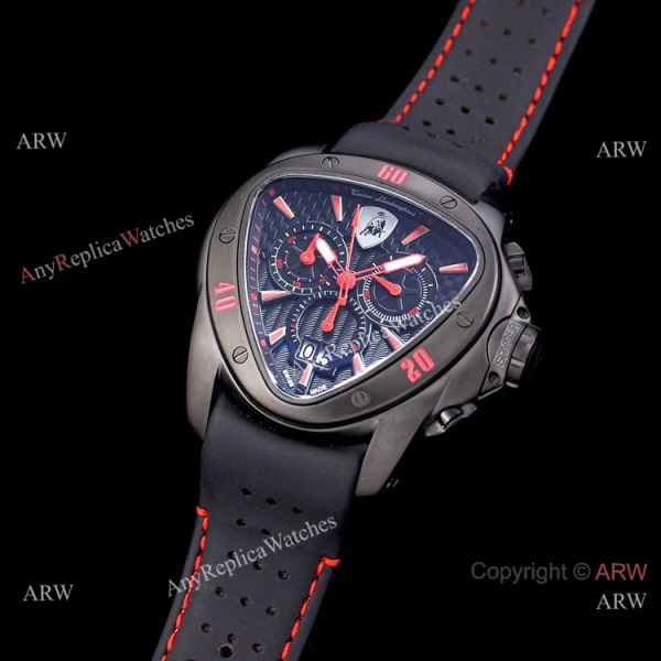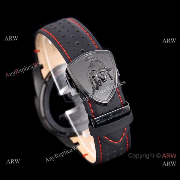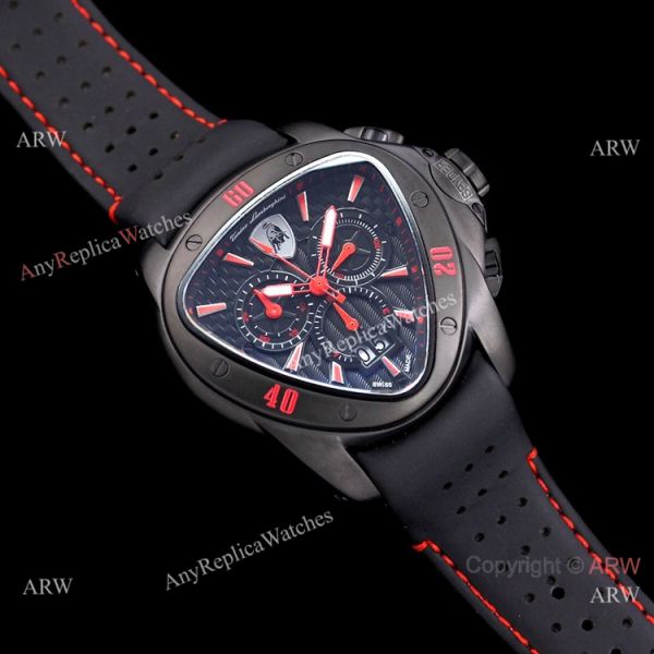 Black Steel Case Black Rubber Bracelet Black Dial w/ Red Markers Lamborghini Watches Replica