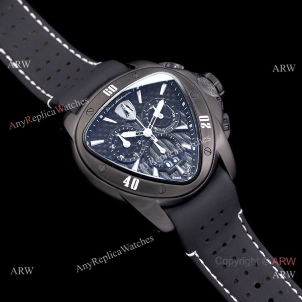 Black Steel Case Black Rubber Bracelet Black Dial w/ White Markers Tonino Lamborghini Watch Replica