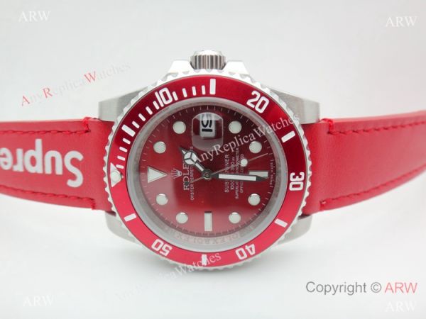 Supreme Rolex Stainless steel Red Leather Strap Watch