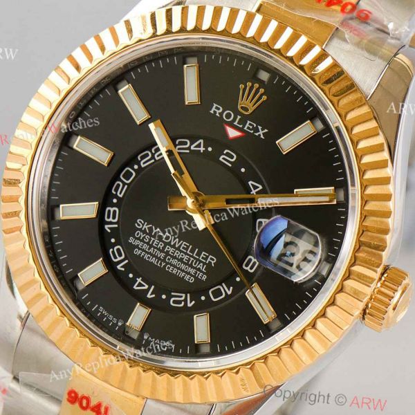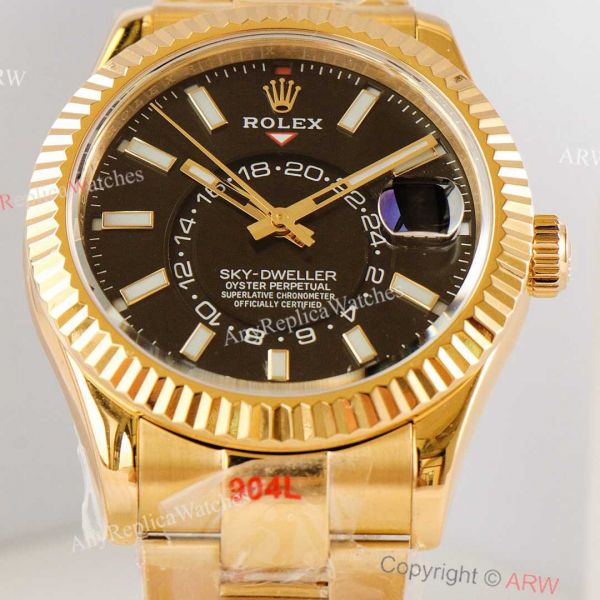Super Clone Rolex Sky Dweller All Gold Black Dial Swiss Cal.9002 Movement