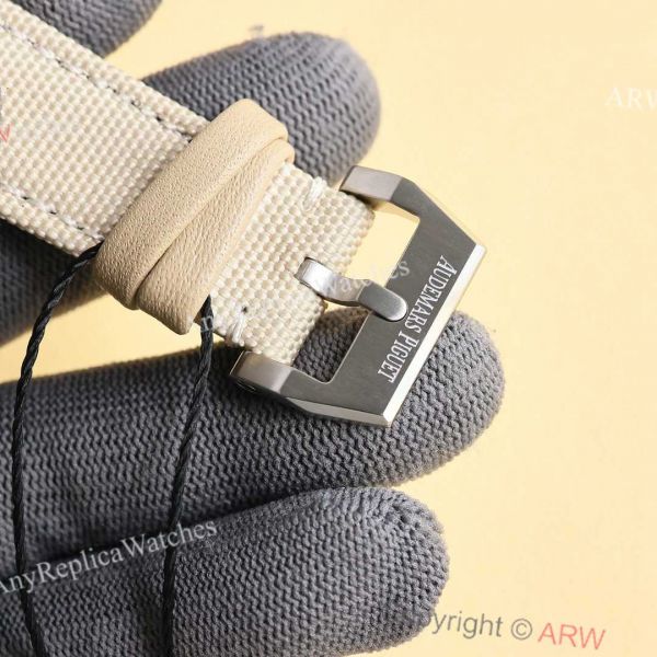 Watch band: Beige fabric strap with Audemars Piguet Logo on Buckle