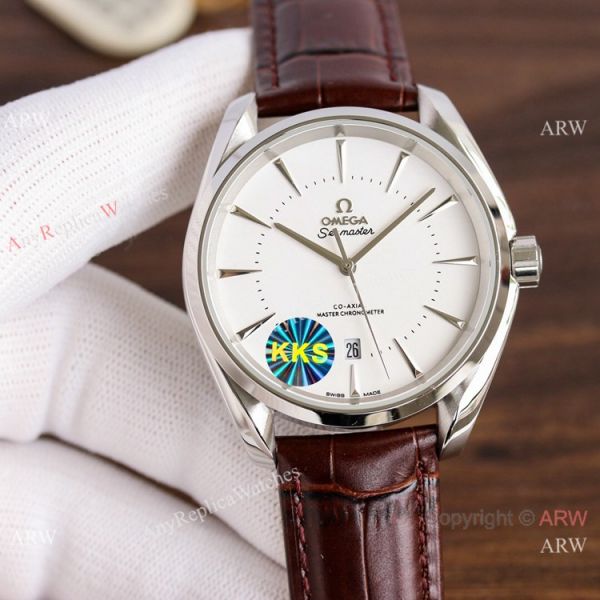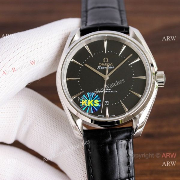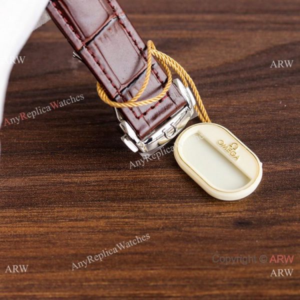 316L Stainless steel Case Black Leather Bracelet White Dial Omega Watch