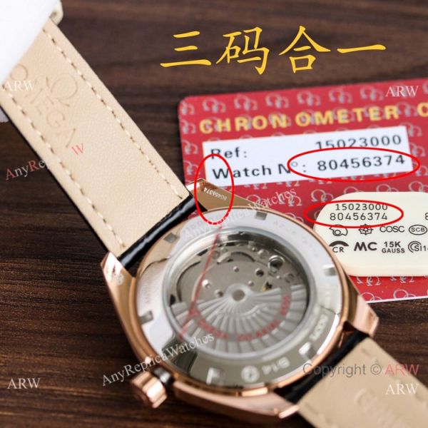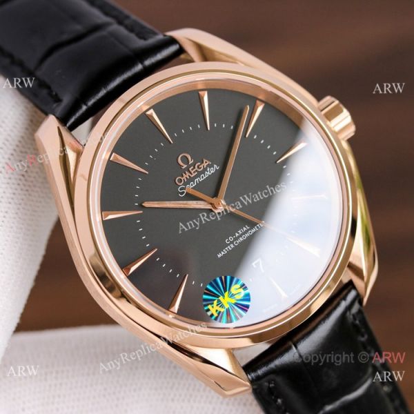 316L Rose Gold Case Black Leather Bracelet Black Dial Omega Watch