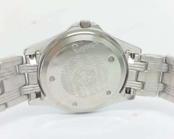 Solid steel back case with Omega logo on back and Omega crown on proper position on the whole watch