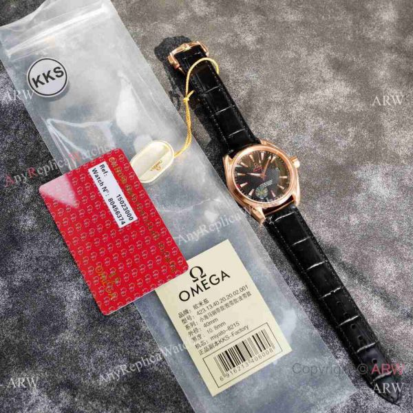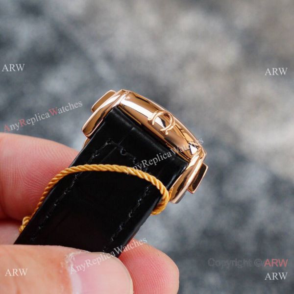 316L Stainless Steel coated Rose Gold Watch Case - Black Face - Black Leather Strap Omega Copy Watches