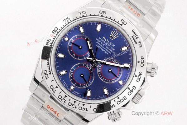 904L Stainless Steel with Oyster bracelet Blue Face Silver Bezel Daytona Watch