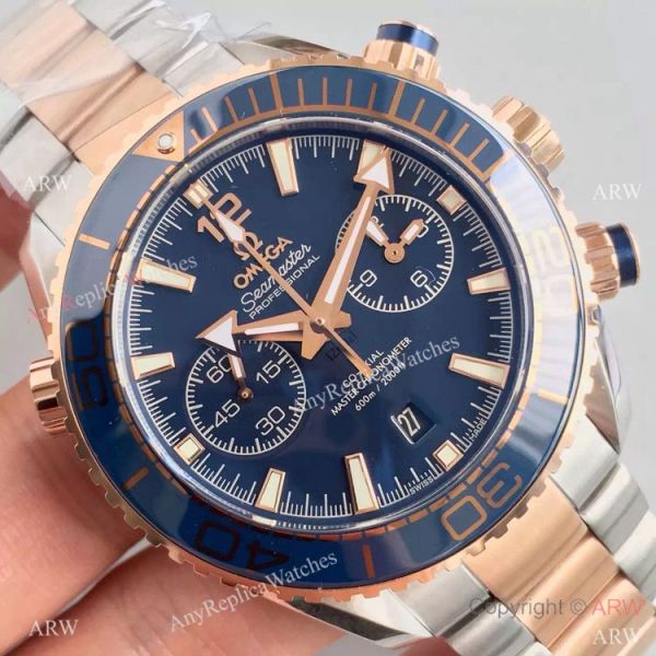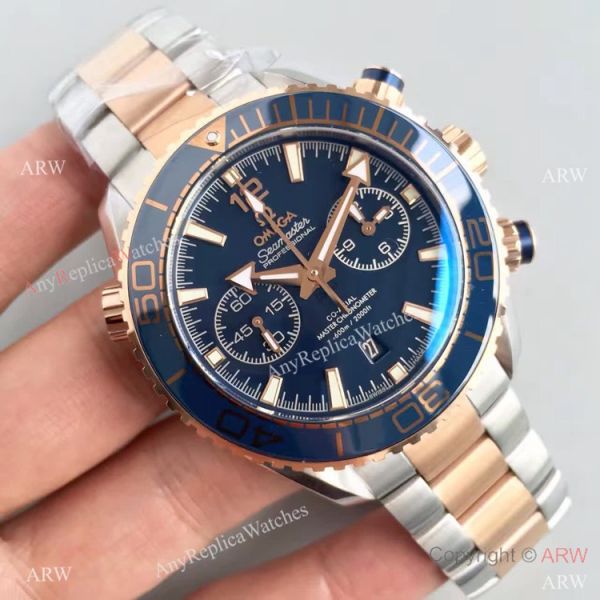 Omega 2-Tone Rose Gold Blue Dial Blue Bezel