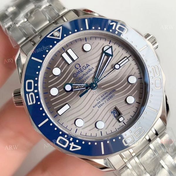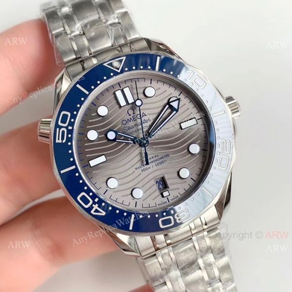Silver Steel Watch Case - Gray Wave Stripe Face - Blue Ceramic bezel Swiss Replica Watches for sale