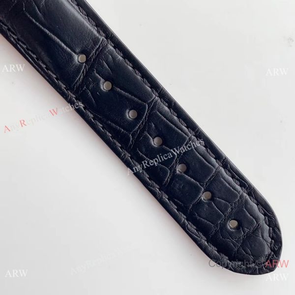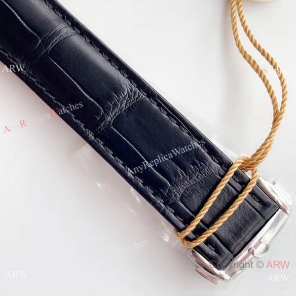 Bracelet: High Quality Black Leather watch band with original style deployment buckle