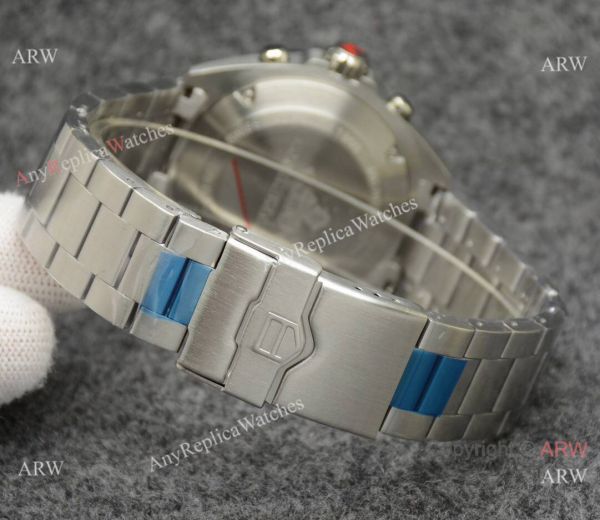 All the appropriate Tag Heuer markings in all the appropriate places, including the clasp, dial, and back.