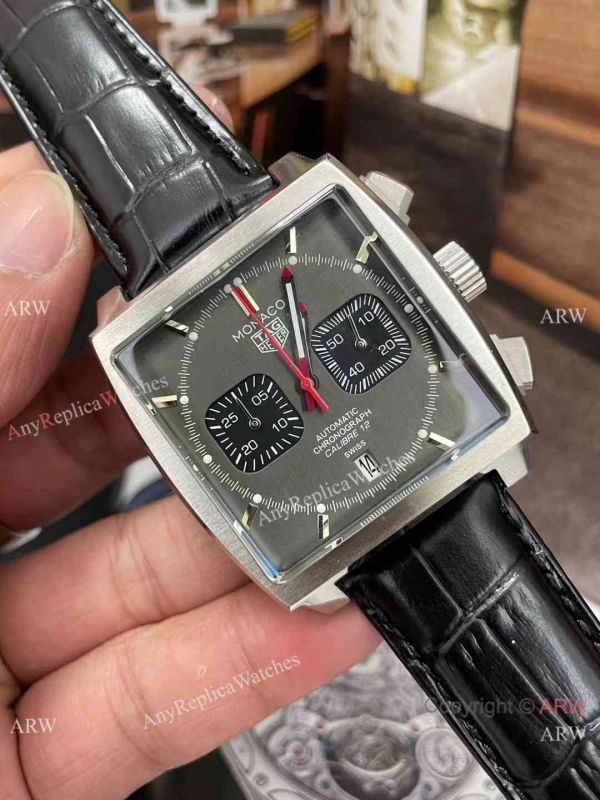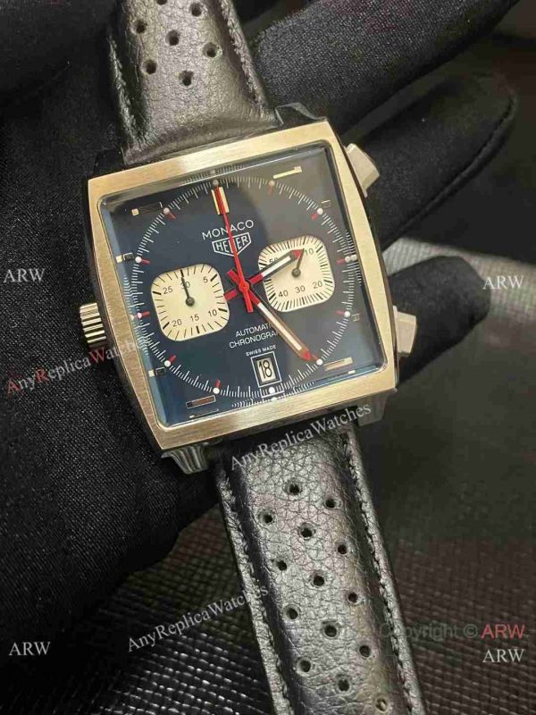 Replica Tag Heuer Monaco 50th Anniversary Quartz Watches Black Leather Band