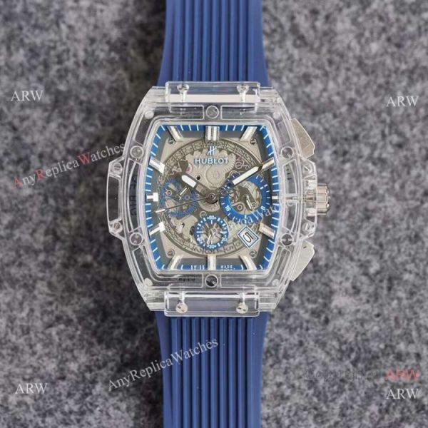 Top Quality Hublot Spirit of Big Bang Transparent Watch Blue Rubber Strap-Best Fake Hublot Watches