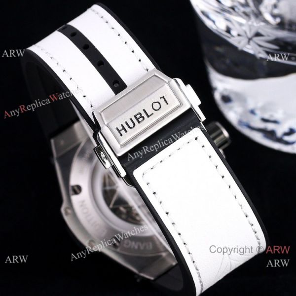 All the appropriate Hublot markings in all the appropriate places, including the clasp, dial, and back.