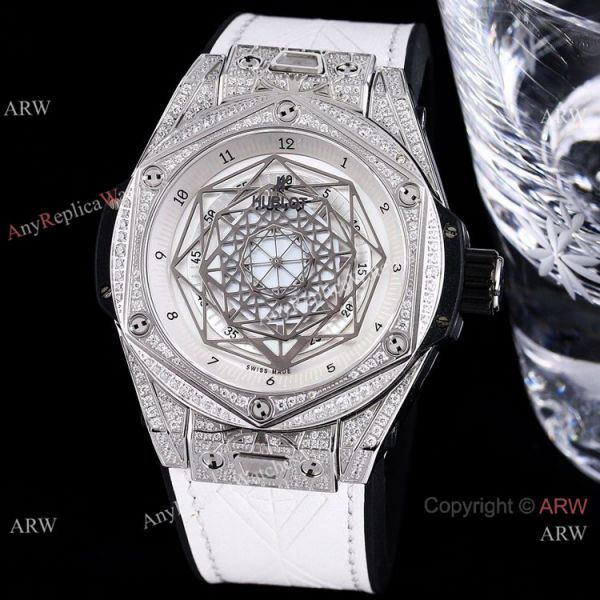 You will get exactly same Swiss Quality Replica Hublot Big Bang Sang Bleu Watch set Diamonds what you see in our Pictures. Best Gift watch from Anyreplicawatches.