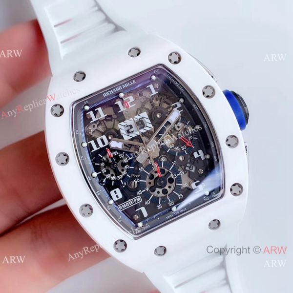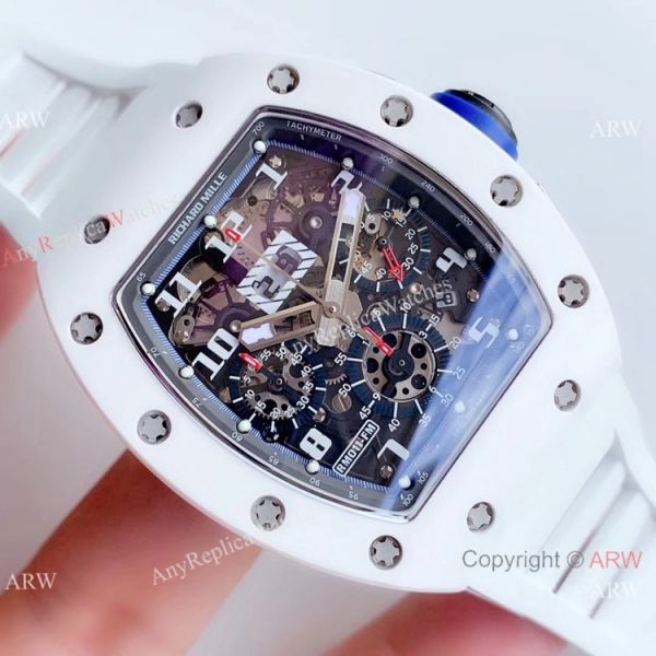 KV Factory Swiss 7750 Richard Mille RM 011-FM Polo Club Saint Tropez White Ceramic Watch Richard Mille AAA