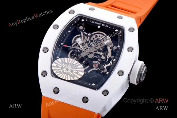 White Ceramic Chronograph Skeleton Dial - Orange Rubber Watch Band with Richard Mille Deployment Buckle Richard Mille RMo55 Bubba Watson Watch