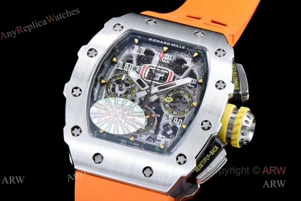 The watches we sell are Swiss Grade Replicas, We guarantee this is the highest quality Swiss Replica Richard Mille watch you can buy. You will receive the same watch as shown. Buy Genuine quality Richard Mille RM 11-03 Flyback Richard Mille Orange Band Replica Watch at best price. Buy now from Trusted Dealer, 100% customer satisfaction guaranteed.