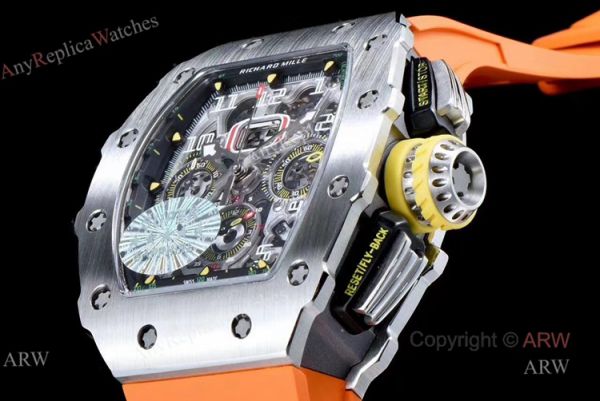 Titanium Watch Case - Skeleton Dial - Richard Mille Orange Band