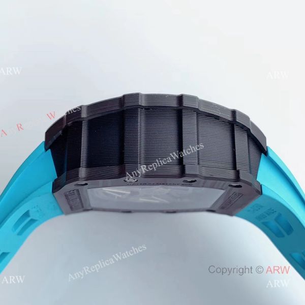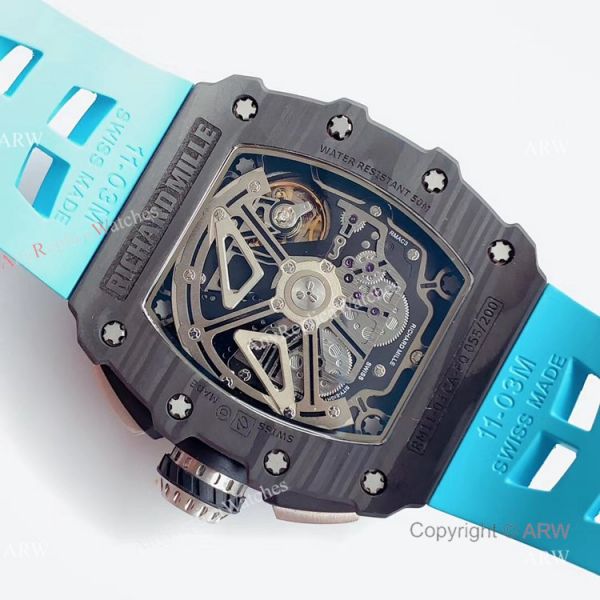 KV Factory V2 Upgraded Knockoff Richard Mille RM11-03 Carbon Watch With Blue Rubber Bracelet