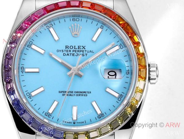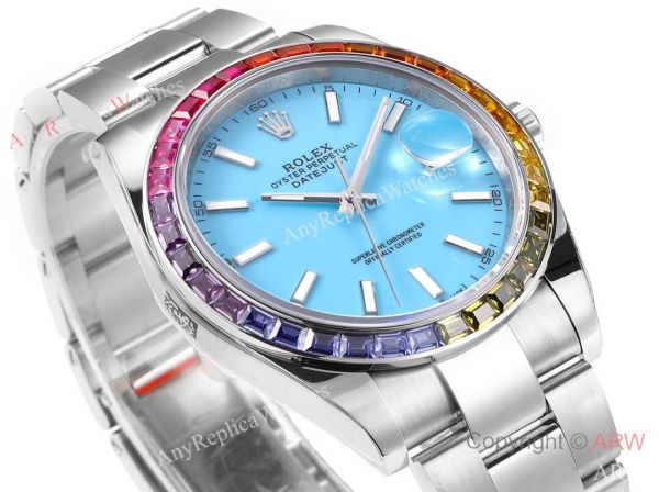 JVS Swiss 3235 Rolex Datejust II Rainbow Watch 904l Stainless Steel Turquoise Dial