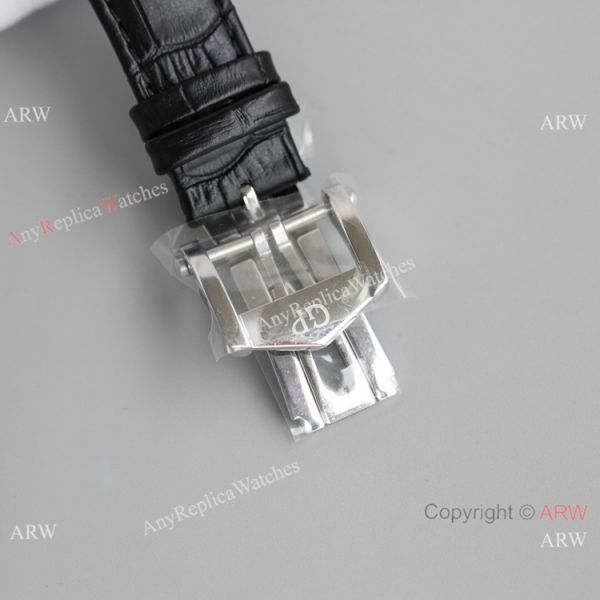 Bracelet: Black Leather Bracelet with Girard-Perregaux Logo on Buckle