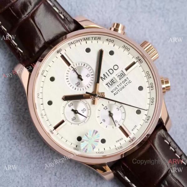 Swiss Replica MIDO Multifort Chronograph Asia7750 Rose Gold Watch 44mm for Men