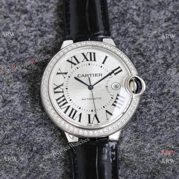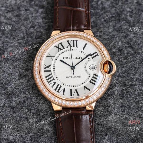 Swiss 2824 Cartier Ballon Bleu Watches Rose Gold Silver Dial Single Diamond-set