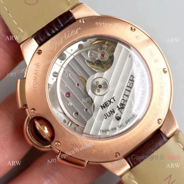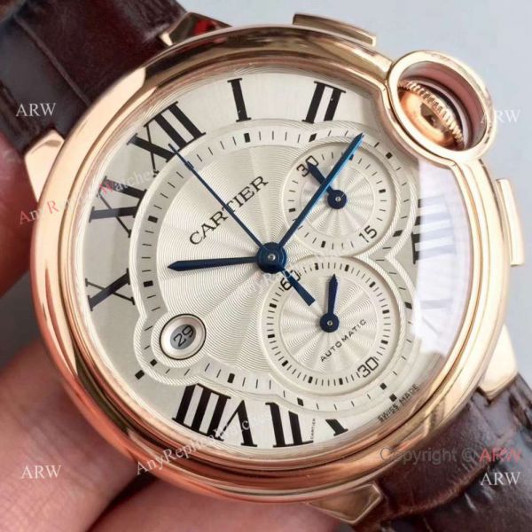 Rose Gold Watch Case White Dial Brown Leather Strap Cartier Ballon Bleu Chronograph Men watches buy online