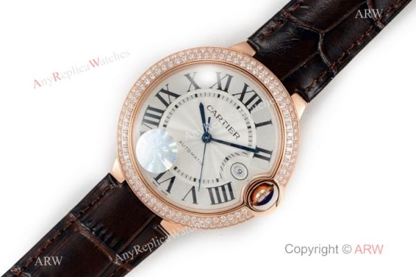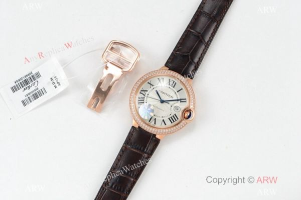 (CR) Swiss Grade 1 Ballon Bleu De Cartier Copy Watch Brown Leather Strap