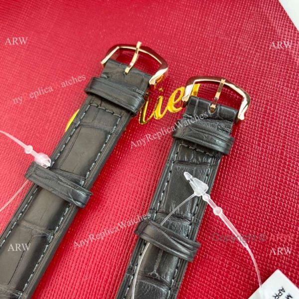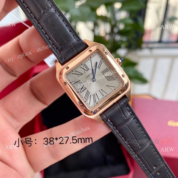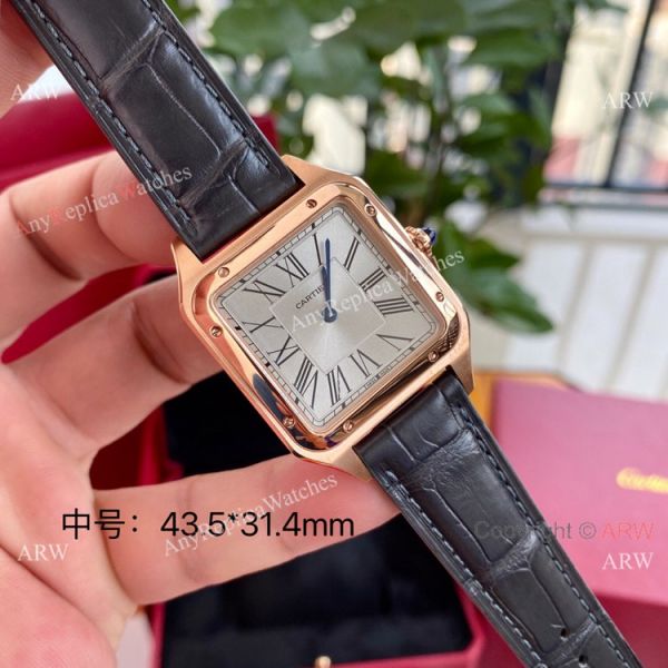 316L Stainless steel coated Rose Gold Case Silver Face Gray Leather Strap Cartier Santos Fake Watch