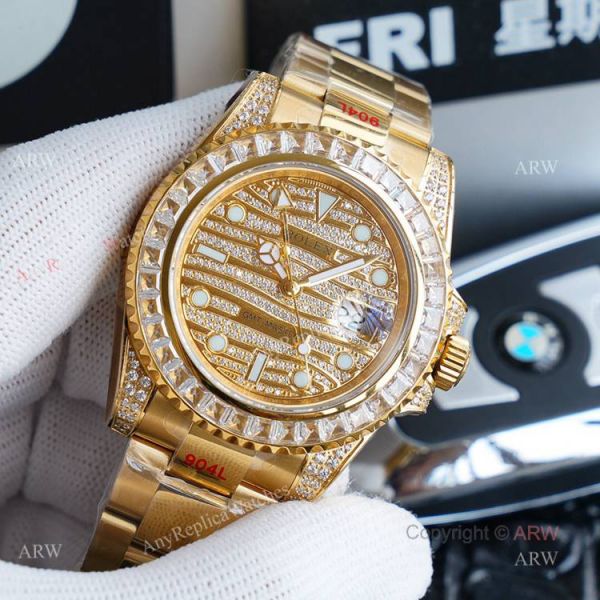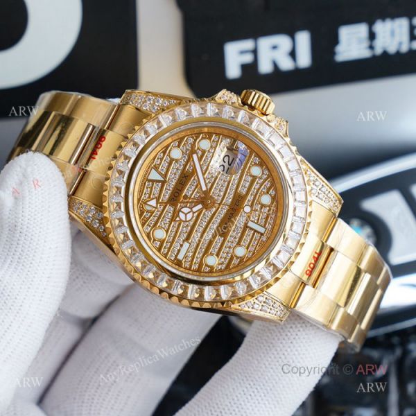 Best Iced Out Rolex Watch - Replica Rolex GMT-Master II Gold Diamond Watch