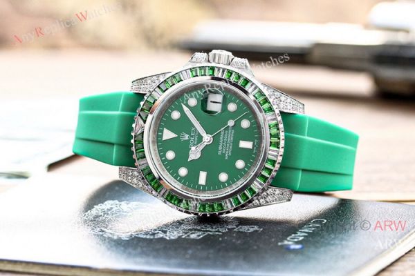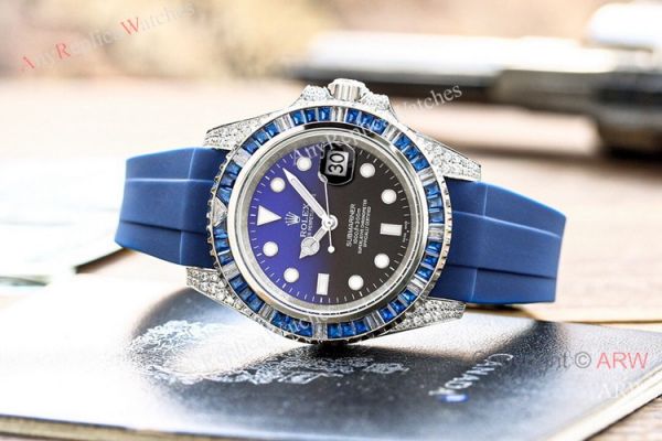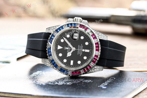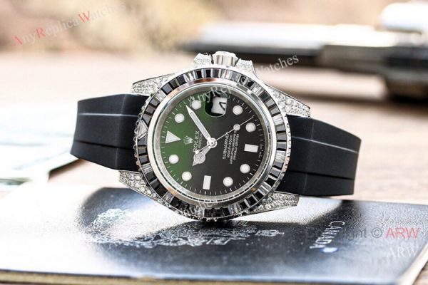 Stainless Steel case / rainbow diamond bezel / Black rubber strap Rolex Submariner Replica Watch Buy Online