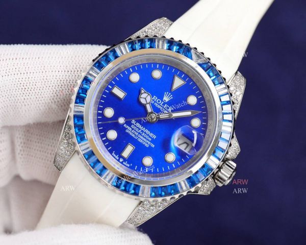 This Rolex Submariner has the unique and updated appearance. You will get exactly same replica Rolex Submariner 40mm blue dial zircon bezel watch as shown in the pictures. 1-year free warranty, Swiss Watches have 2-years free warranty and lifetime repair service.