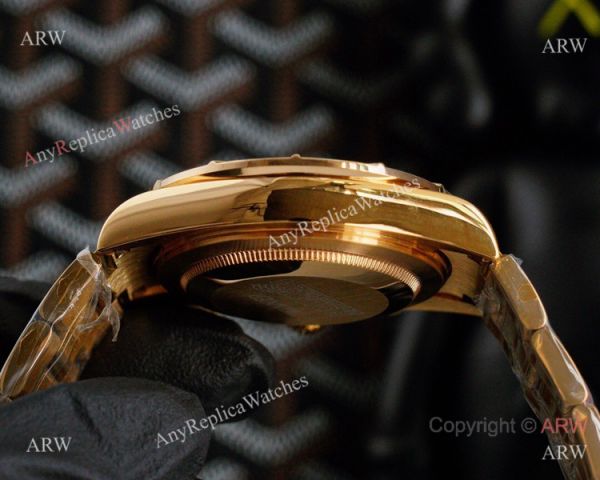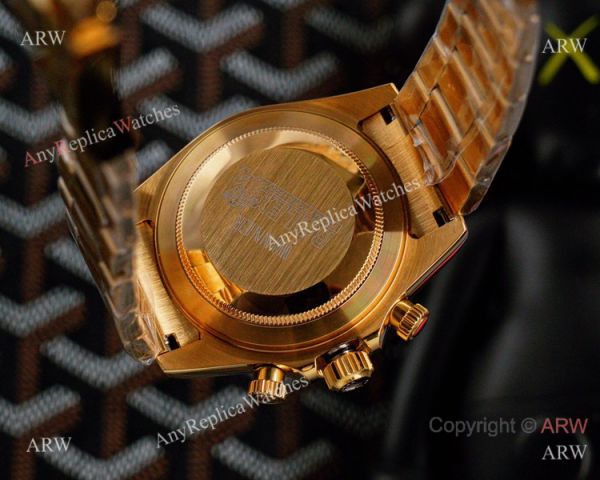 316L Yellow Gold Case Baguette Diamond-set Bezel and Black Dial Replica Rolex Daytona Watch