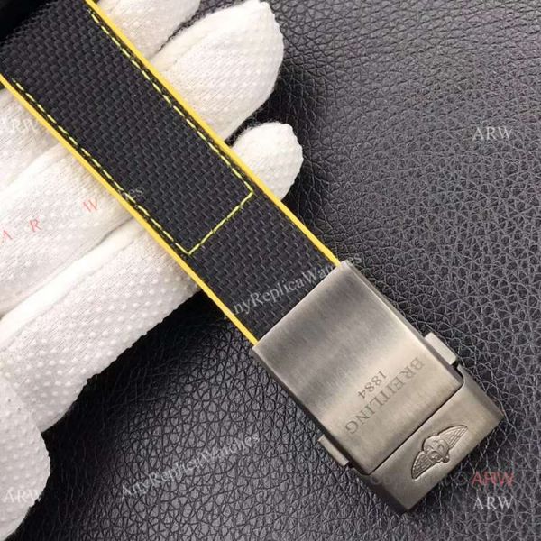 Watch Band: Best Quality Black& Yellow Military Rubber Strap with 1:1 copy original style Breitling deployment buckle