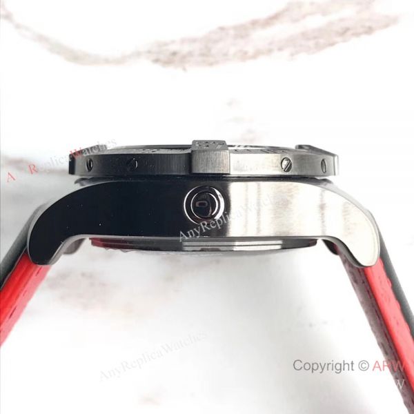 Black PVD Watch Case Black Dial Arabic Marking Black Leather Watch Bracelet�
