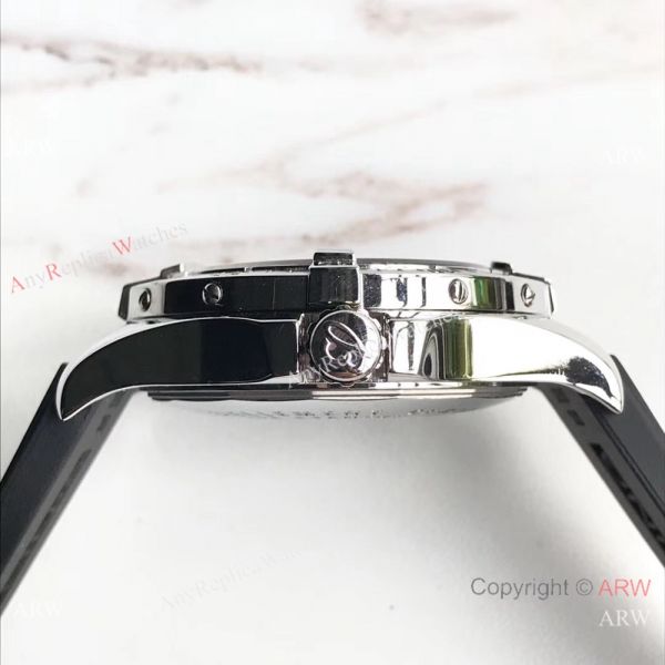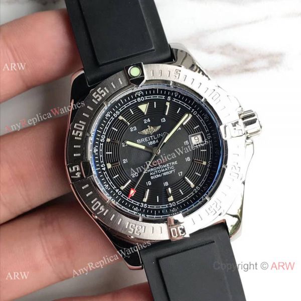 Polished Stainless Steel Case Breitling Black Dial Breitling Black Rubber Watch Bracelet Breitling Mens Watches