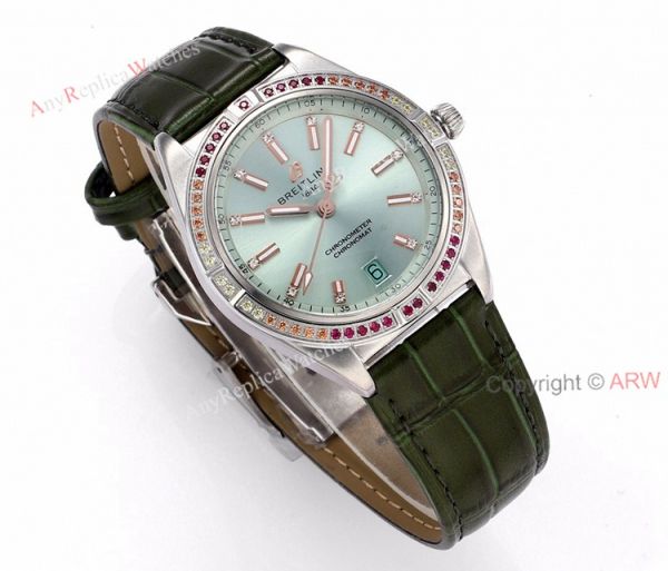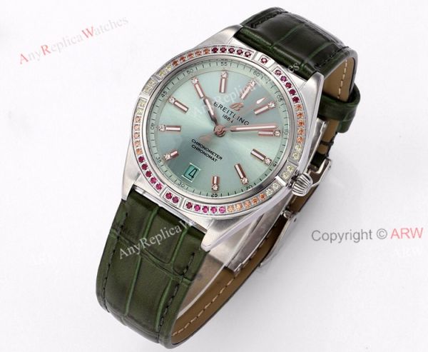 Swiss Grade Breitling Chronomat Women Replica Watch Mint Green Dial