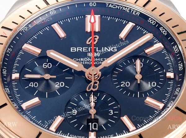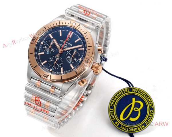 Swiss Grade Replica Breitling New Chronomat B01 42mm Chrono Watch Rose Gold and Blue Dial