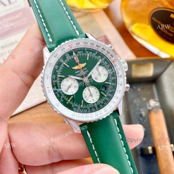 Swiss Breitling Navitimer Valjoux7750 Watch 43 Green Leather Strap Green Dial