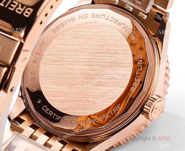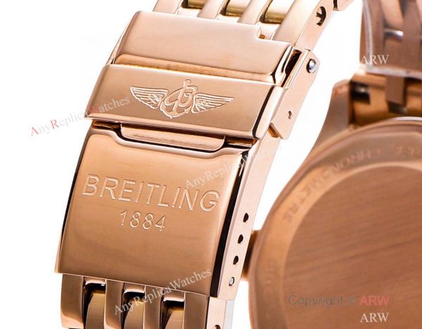 Watchband: High Quality 316l Stainless Steel coated Rose Gold watch bracelet. Buckle with Proper Breitling Engraving.