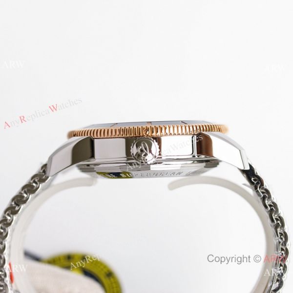 Watch Bezel: Blue&Rose Gold Ceramic bezel with Unidirectional ratcheted rotating bezel