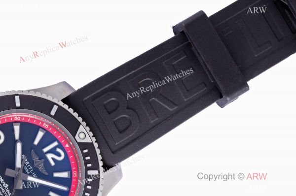 Watchband: High Quality Black Rubber watch bracelet. Buckle with Proper Breitling Engraving.