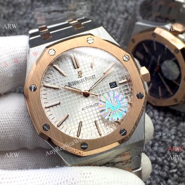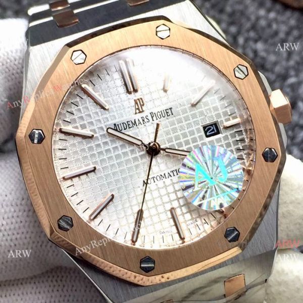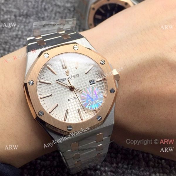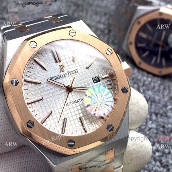Fake Audemars Piguet Royal Oak Watch Two Tone Rose Gold Silver Dial