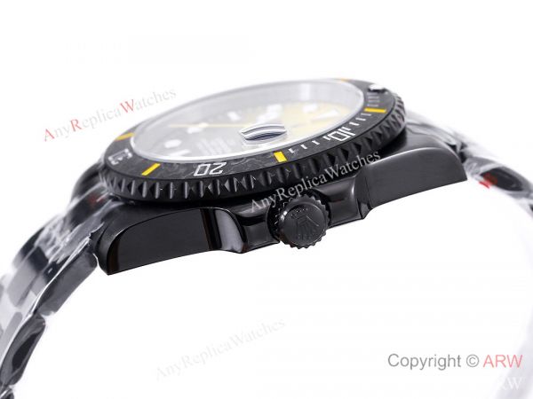 Rolex DiW Submariner watch: 904L Stainless steel case coated black Black/Yellow dial Carbon bezel