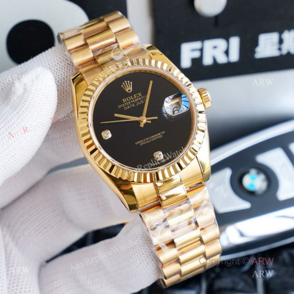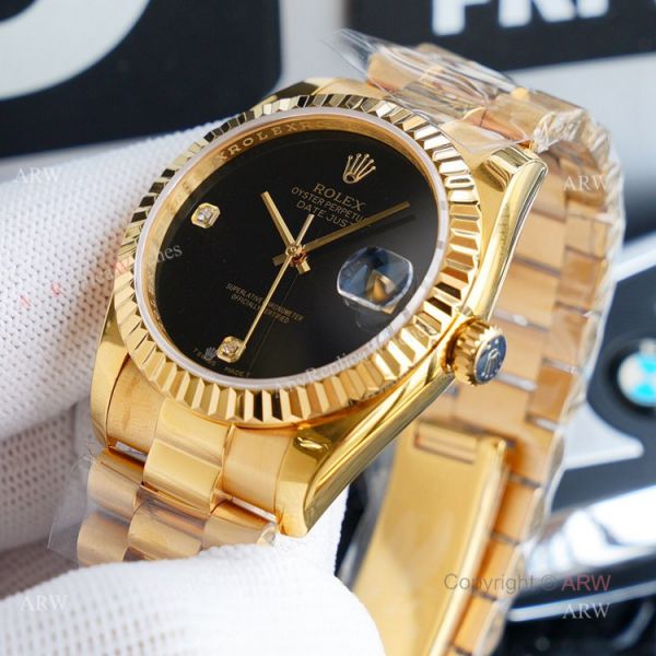 High Quality Replica Gold Rolex Datejust 36mm Black Dial ETA2836 Automatic Watch