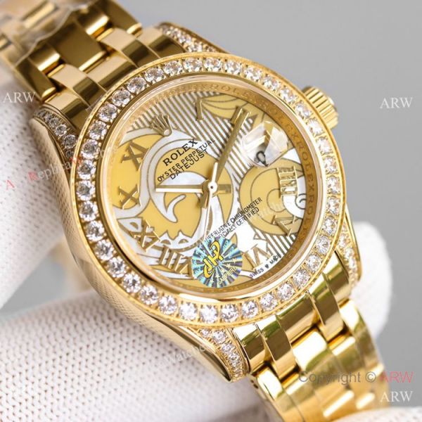 904L Gold Case New Special Dial Diamond Bezel Pearlmaster Ref,81158 Watch