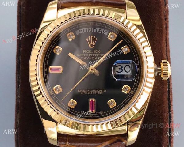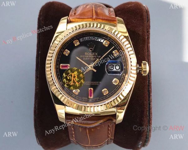 Premium Quality Rolex Day-Date 36mm Watch Yellow Gold Black Dial 2836-2