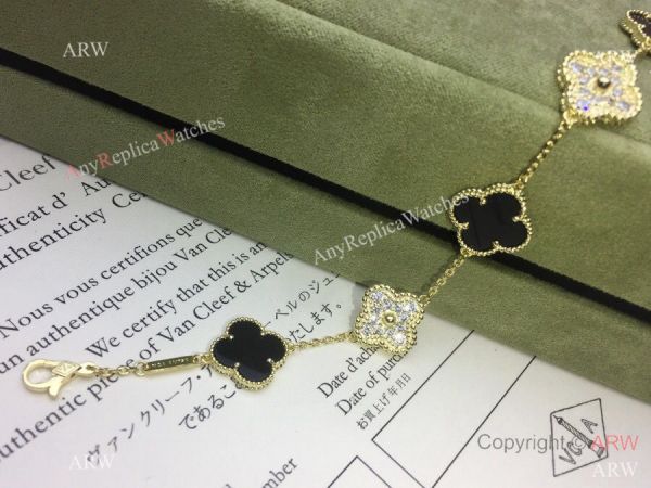 Gold-coated Bracelet and Onyx&Diamonds, VC&A Logo on the Bracelet
